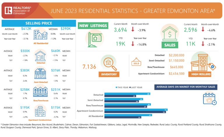 JUNE 2023 Edmonton Housing Statistics: As the hot summer begins, the demand for residential listings and sales experiences a cooling trend.